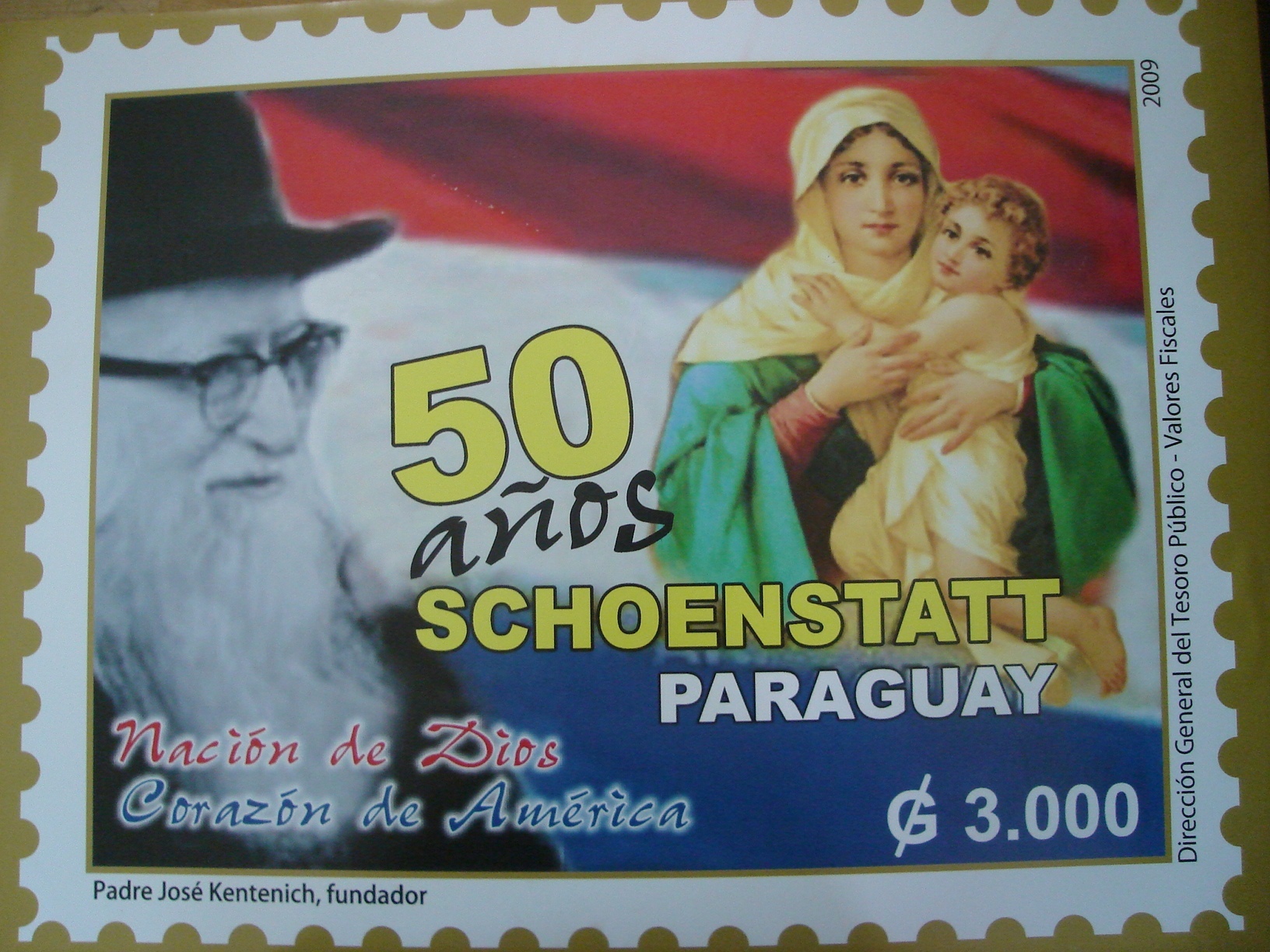 Estampilla conmemorativa por los 50 años de Fundación del Movimiento de Schoenstatt Paraguay. Fue presentada el 18 de octubre del 2009 en Tupãrenda. Es la 2º estampilla conmemorativa de Schoenstatt. La primera se hizo por los 25 años de Schoenstatt en Paraguay.