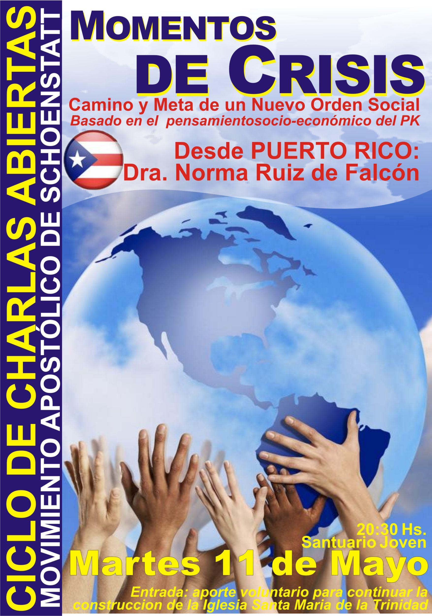 La disertante de esta charla, doctora Norma Ruiz de Falcón, de Puerto Rico, posee una Maestría en estudios religiosos y un doctorado en Filosofía y Teología. Su tesis doctoral la realizó basado en el pensamiento socio-económico del Padre José Kentenich, bajo la tutela del Padre Horacio Sosa. La charla se basa en el libro de su autoría: "La Solidaridad, camino y meta de un nuevo orden social".