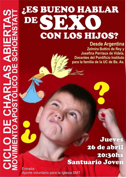 Les invitamos a participar de la charla abierta, dirigido especialmente a padres de familia, del próximo Jueves 26 de abril, a las 20:30 hs. en el Santuario Joven.