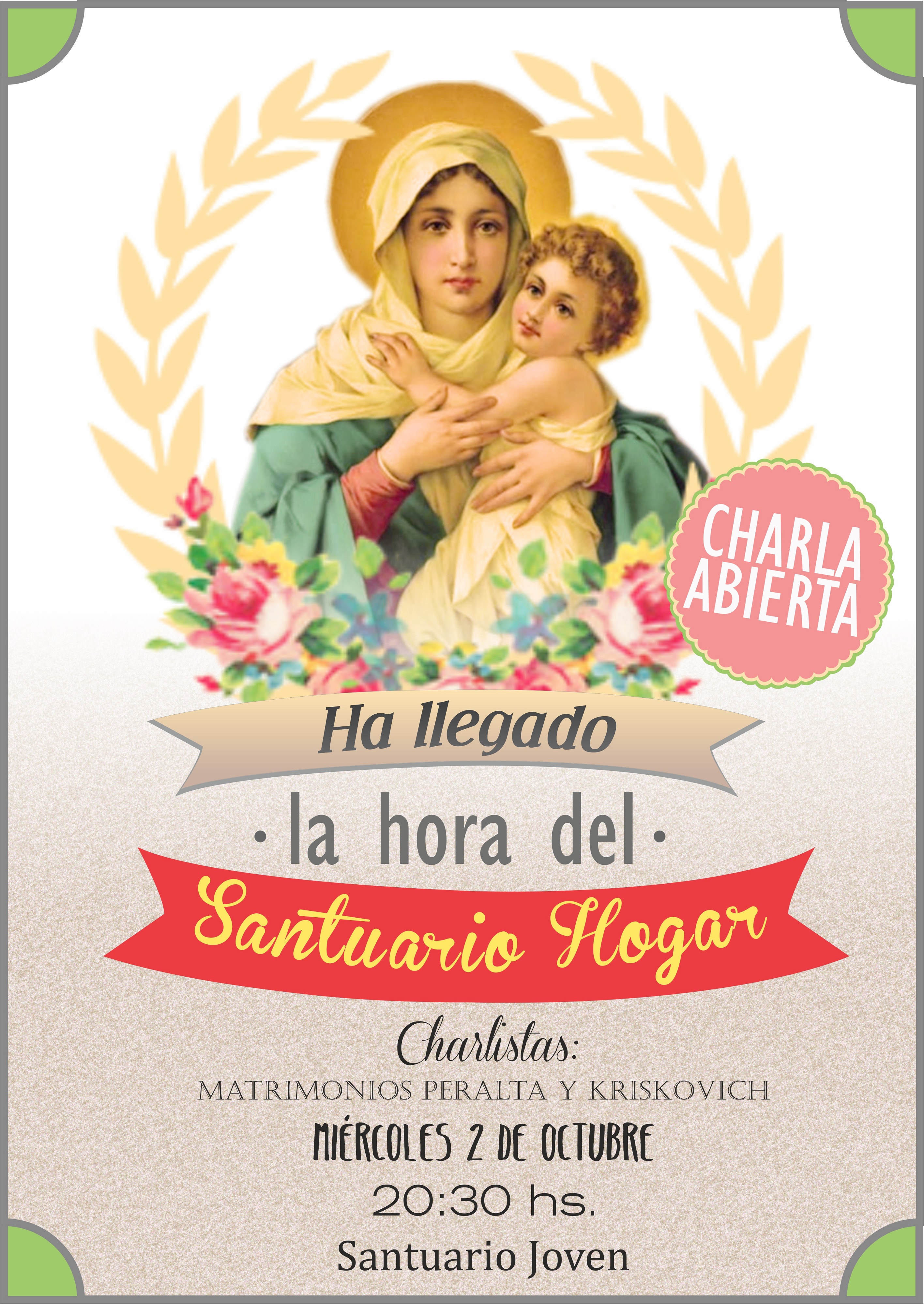 Invitamos a todas las personas interesadas a asisitir a la charla abierta sobre el tema: "Ha llegado la hora del Santuario Hogar" el martes 2 de octubre a las 20:30 hs.