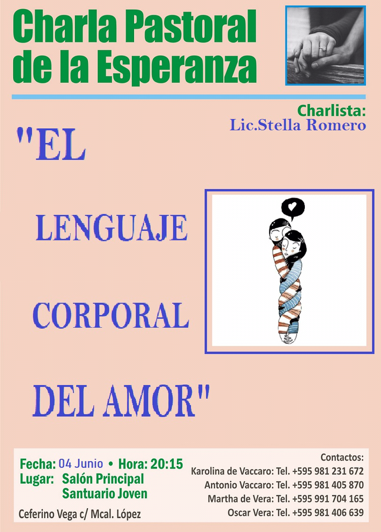 La Pastoral de la Esperanza, un servicio del Movimiento de Schoenstatt para separados en nueva unión, invita a la charla abierta, a realizarse el martes 4 de junio a las 20:15 hs, en el Santuario Joven.