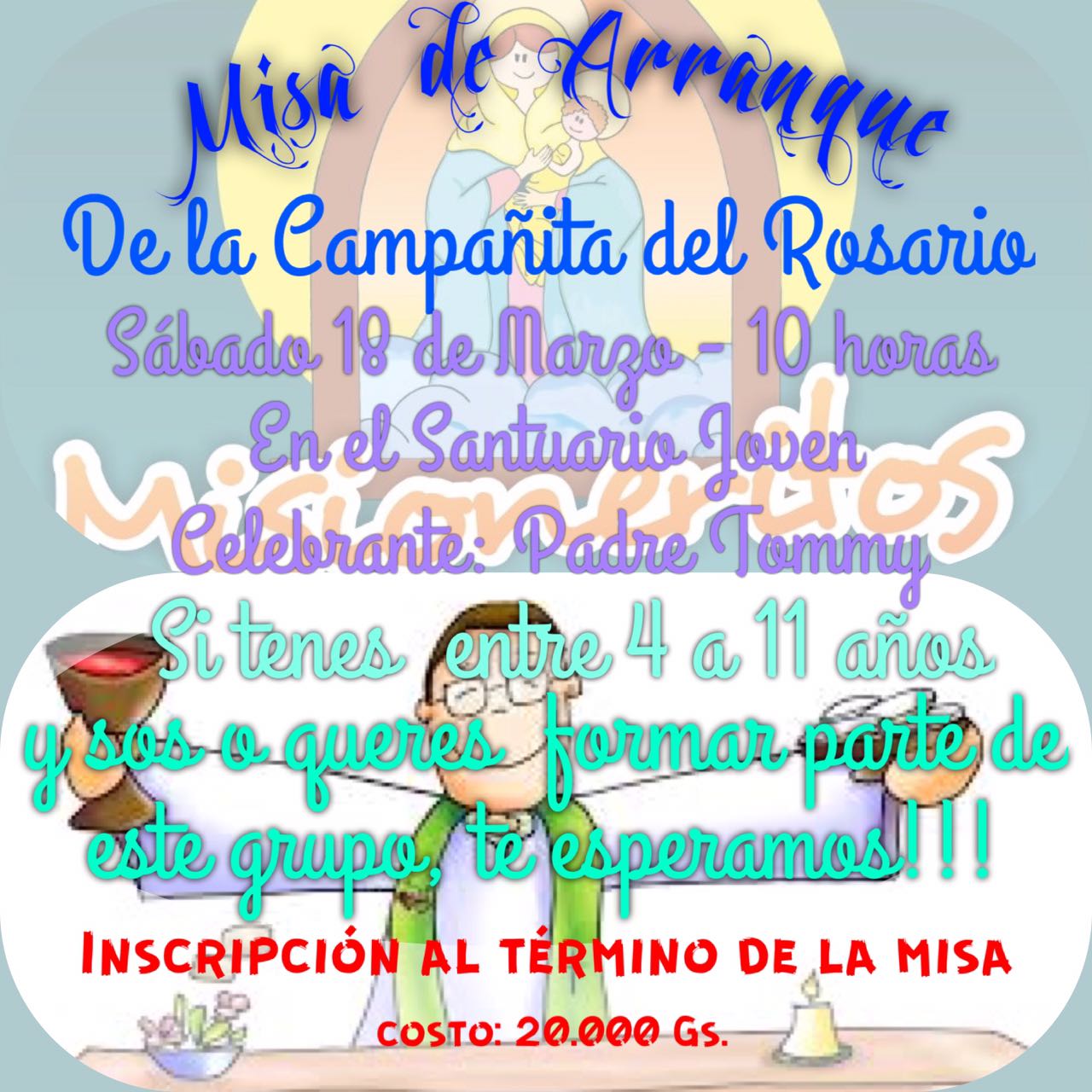 Al finalizar la misa habrá inscripciones para los que quieran ser misioneritos.
