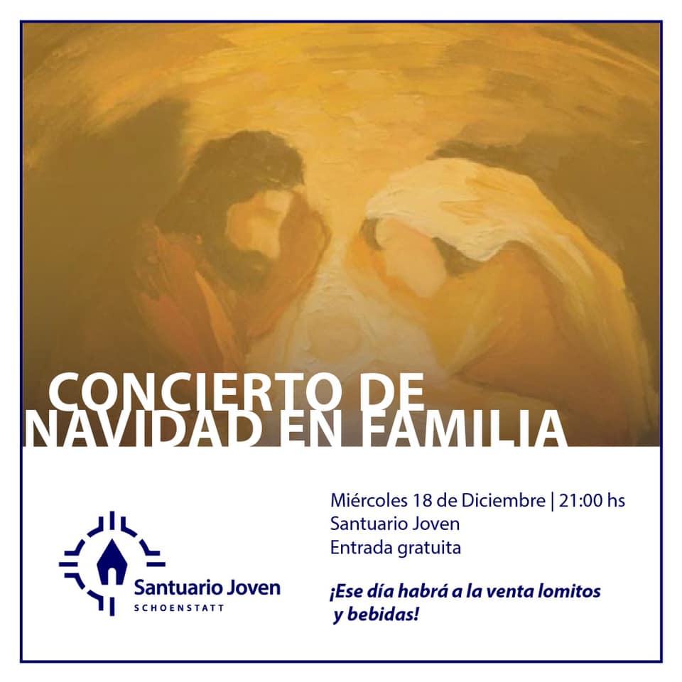 Invitamos a toda la Familia al concierto de Navidad, el mércoles 18 de diciembre a las 21:00 hs. en la explanada del Santuario Joven y así preparar nuestro corazón para recibir a Jesús cantando y compartiendo al pie del santuario.