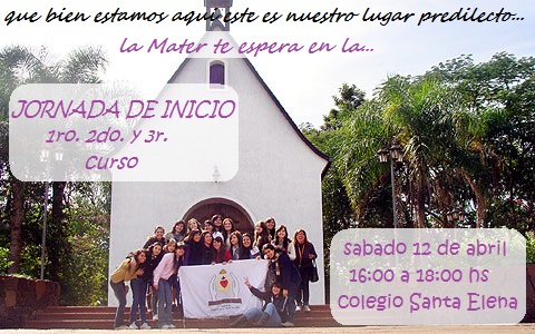 La jornada de iniciación será en el Colegio Santa Elena, de 16:00 a 18:00hs el sábado 12 de abril.