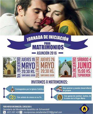 Las jornadas en Asunción será los dias jueves 19 y 26 de mayo a las 20:30 hs en el Santuario Joven