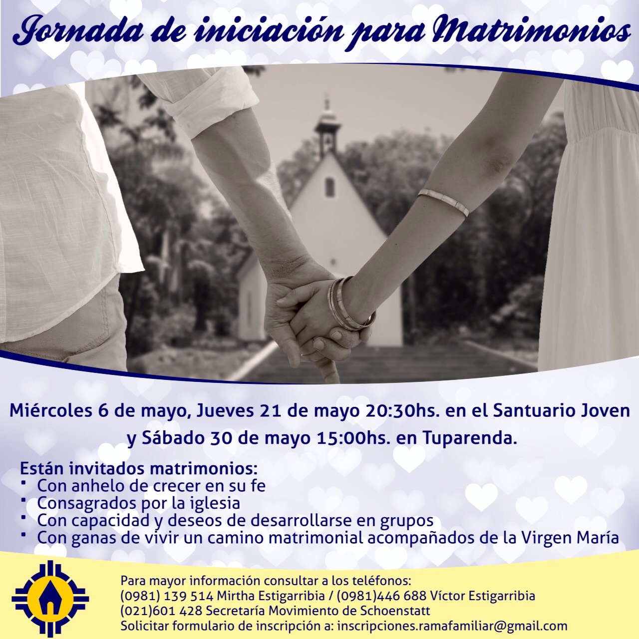 Invitamos a matrimonios consagrados por la iglesia católica y que quieran formar grupos de vida dentro del Movimiento Apostólico de Schoenstatt a las reuniones de iniciación de grupos.