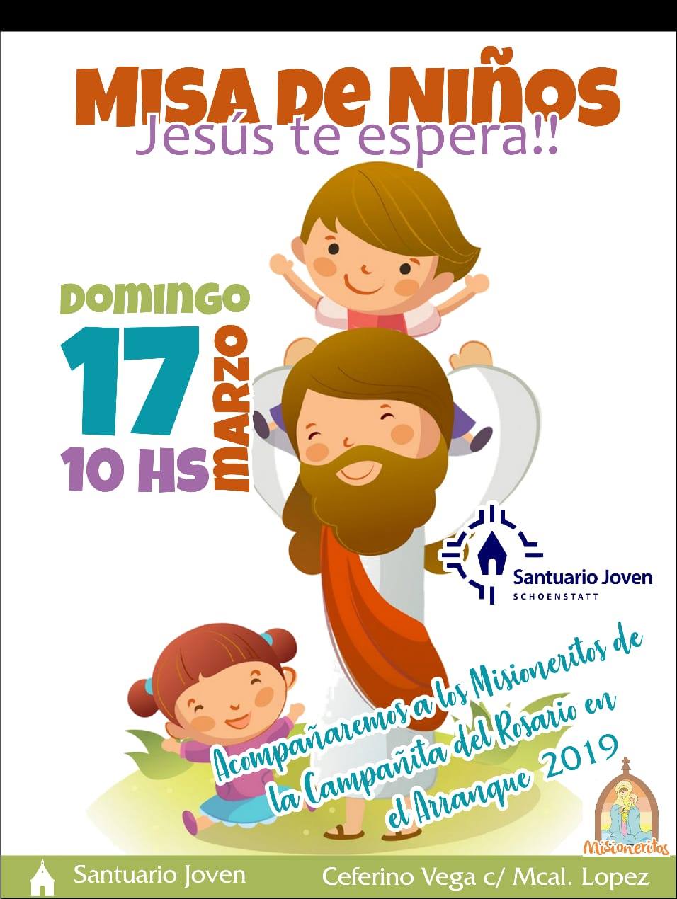 Invitamos a todos los niños a participar activamente en la misa especialmente preparada para ellos, el domingo 17 de marzo a las 10:00 hs en el Santuario Joven.