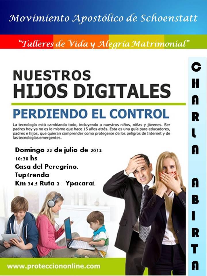 Les esperamos el próximo domingo 22 de julio, para tener un enfoque práctico y técnico con personas dotadas del tema, en relación a la realidad con los hijos.. "Nuestros hijos digitales" se denomina el taller dirigido a las familias: padres, madres e hijos, todos pueden participar. A continuación de la misa de las 09:00hs. en el salón del peregrino, Tupãrenda.