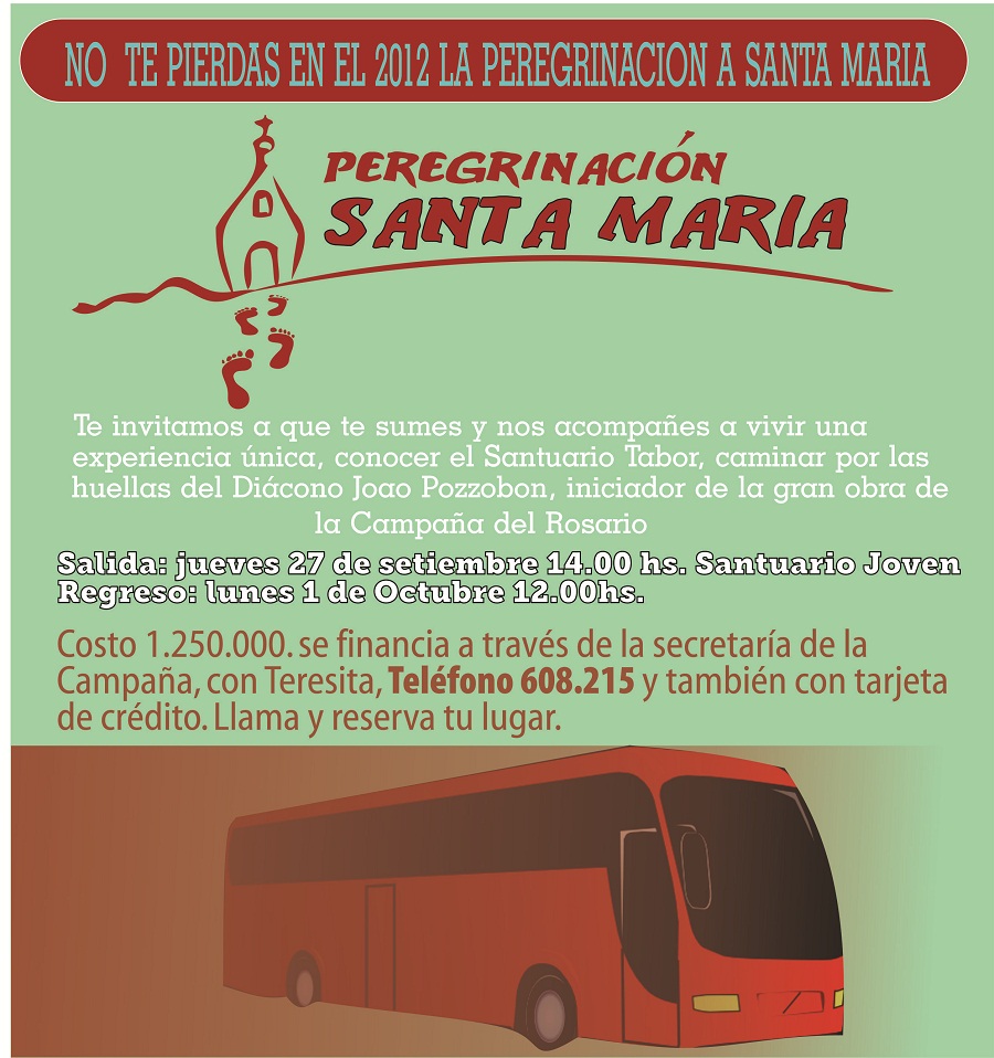 Te invitamos a que te sumes y nos acompañes a vivir una experiencia única, conocer el Santuario Tabor, caminar por las huellas del Diácono Joao Pozzobon, iniciador de la gran obra de la Campaña del Rosario