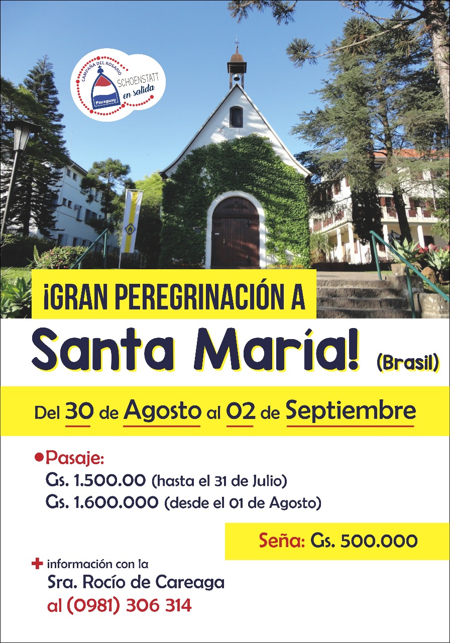 Salida desde el Santuario Joven: Jueves 30 de agosto al mediodia