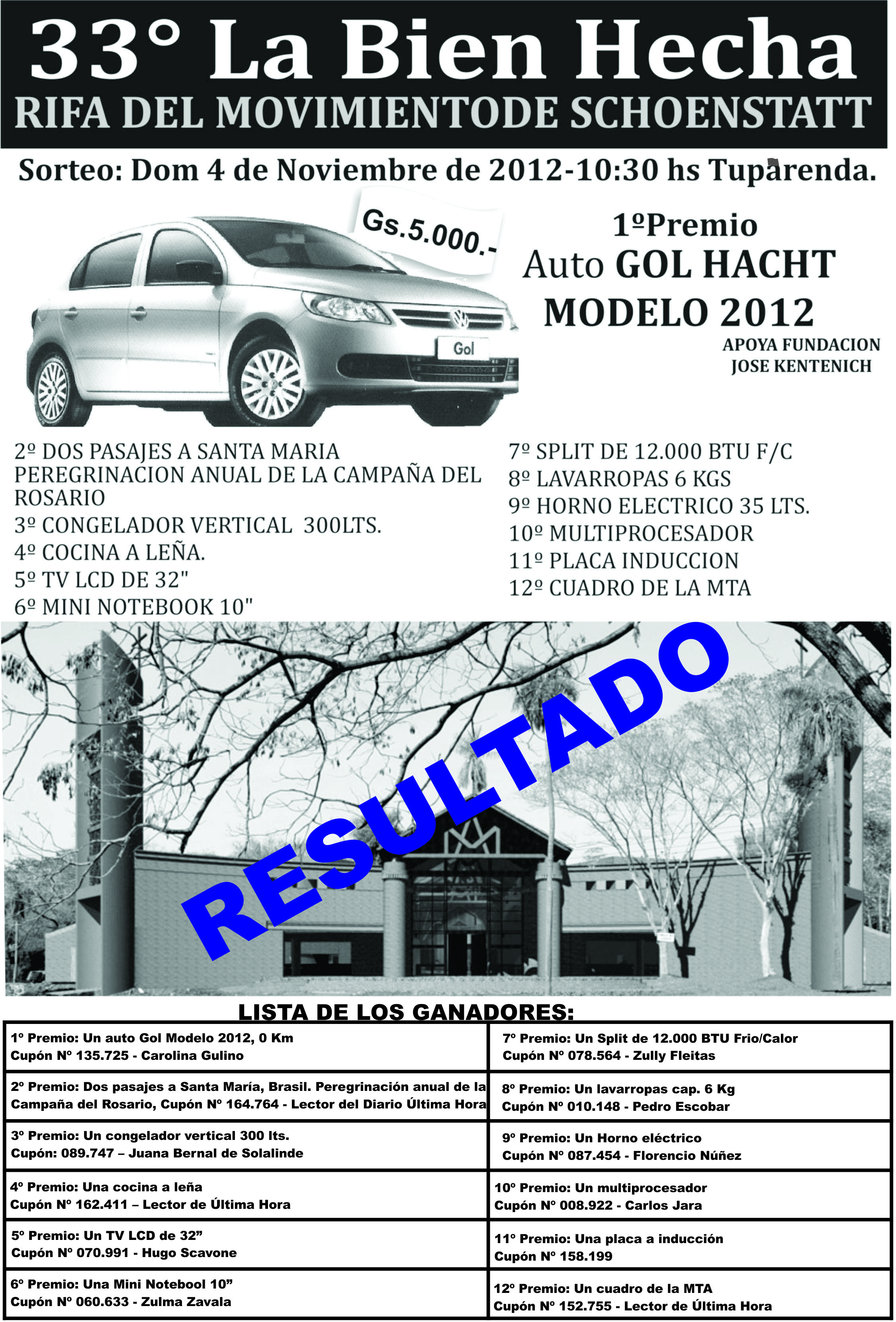 Lista de los ganadores de la rifa anual del movimiento "La bien hecha":