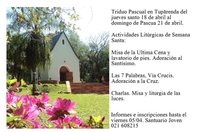 Les invitamos a vivir el Triduo Pascual en la Casa de Retiros en Tupãrenda, participando de charlas, meditaciones y toda la liturgia propia de la semana santa