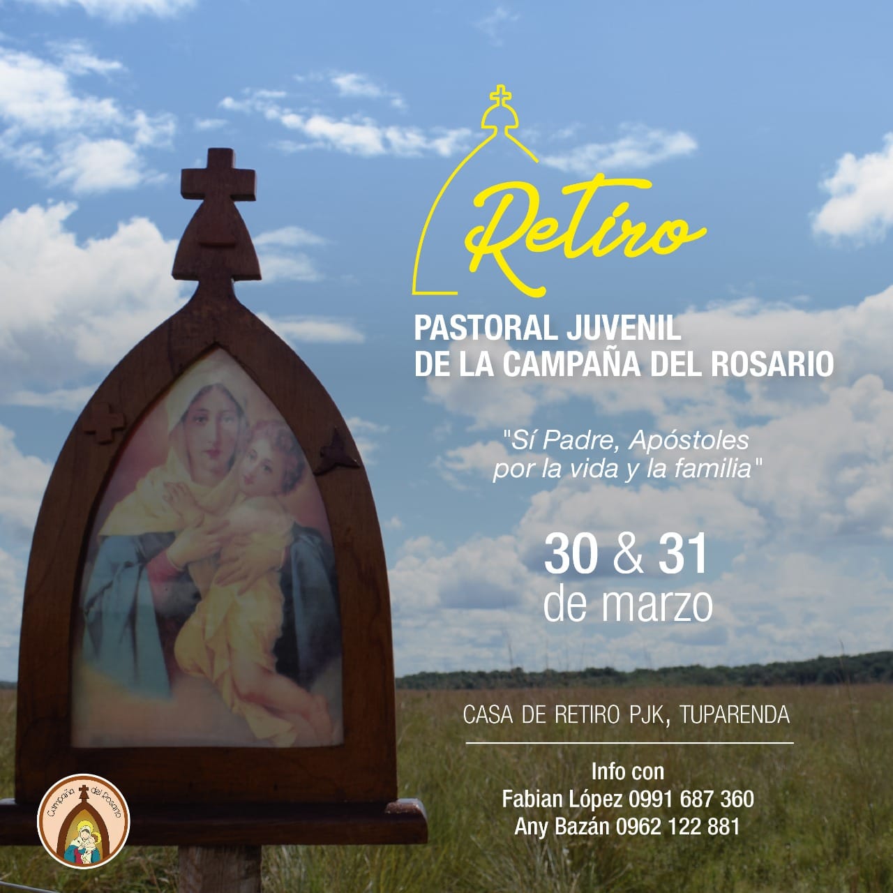 Retiro para misioneros jóvenes de la Campaña del Rosario, a realizarse en la Casa de Retiros, Tupãrenda.