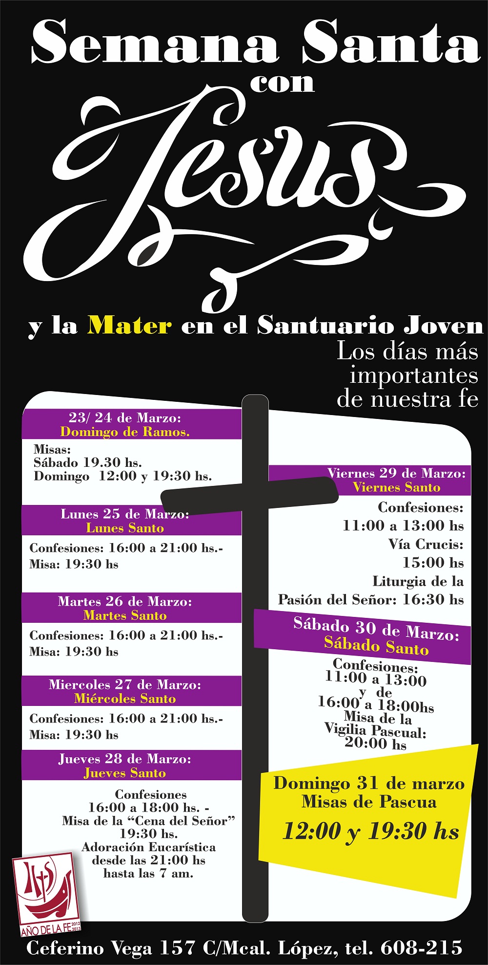 (Te invitamos a participar de las celebraciones de los días más importantes de nuestra fe en el Santuario Joven…)
