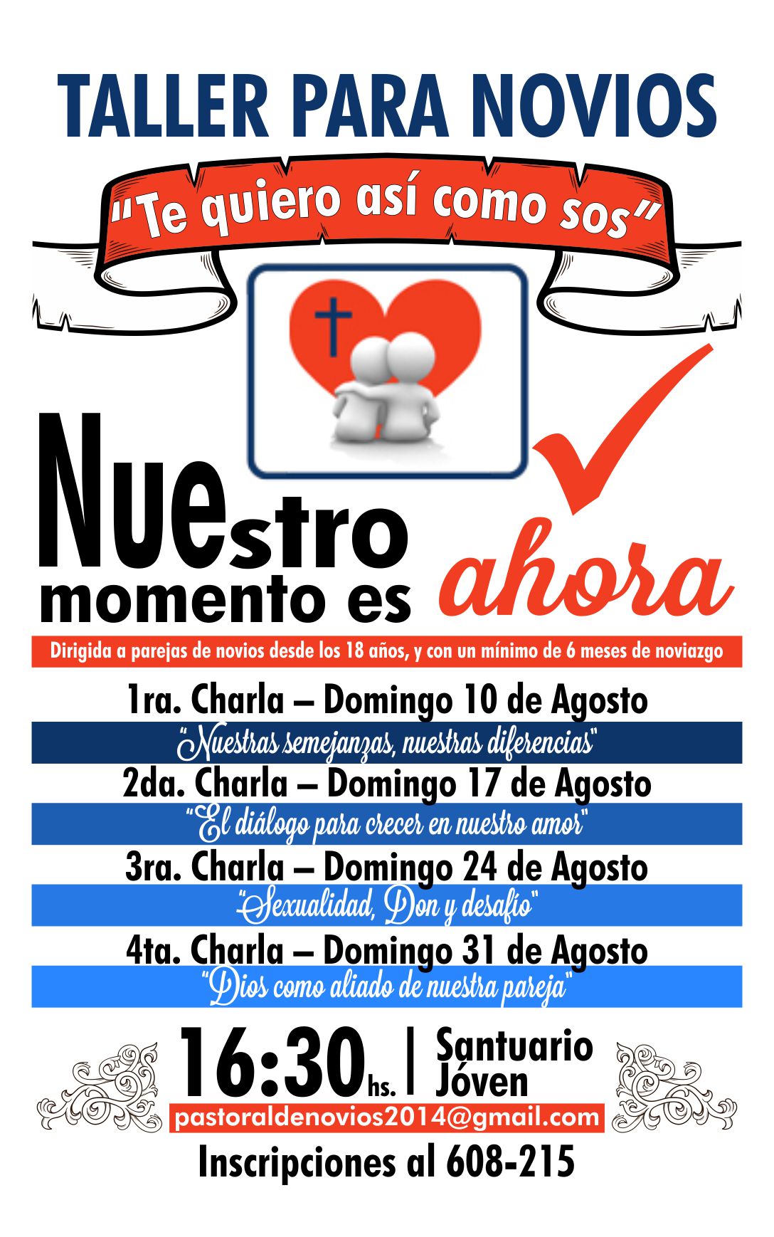 Taller para Novios, Domingos de Agosto, 16:30 hs en el Santuario Joven