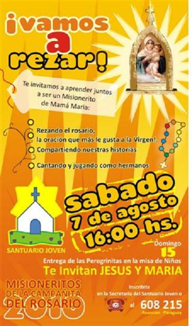 Para que los niños, desde chiquitos, aprendan a querer a la Virgen, este es el apostolado ideal. Ellos hacen recorrer la imagen de la Virgen María, entre sus compañeritos de escuela y rezan un denario.
